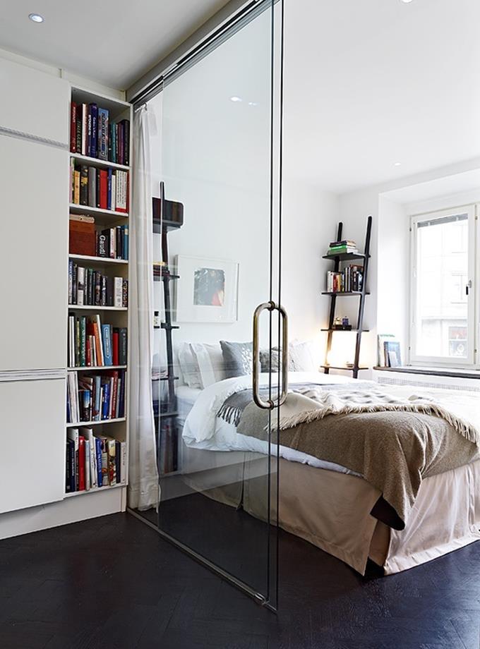 Стеклянные перегородки или смарт-стекло. Сравнительно новое направление. Раздвижные перегородки из стекла не препятствуют прохождению света и практически незаметны, но при нажатии кнопки пульта оно может стать матовым, скрывая тем самым то, что находится за стеклом. Это отличное решение для квартиры-студии, где при помощи перегородок из смарт-стекла можно быстро и просто разделить помещение на несколько зон, при этом не загромождая его. Такие перегородки могут быть вмонтированы в стены, и при необходимости выдвигаться из них. В таком случае они занимают минимум места и абсолютно не видны в раскрытом состоянии.